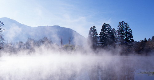 큐슈에서도 추위가 심한 유후인의 겨울, 유후다케 산도 설경으로